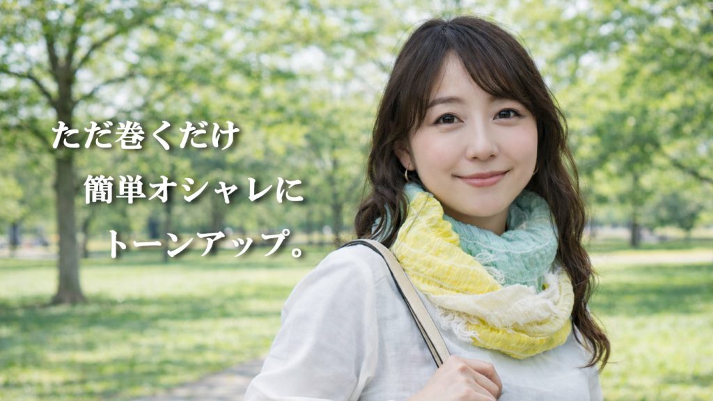 スヌードだからただ巻くだけで簡単、おしゃれにお顔を周り簡単にトーンアップします。