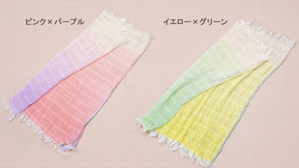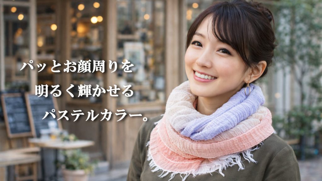 • 繊細なパステルカラーグラデーションがお顔周りを明るく包み込むふんわり播州織のスヌード♪