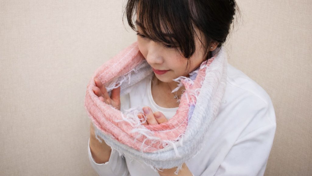 <播州織>光のスヌード。お顔まわりを簡単にトーンアップ。2月19日(木)クラウドファンディング(マクアケ)でデビューします。