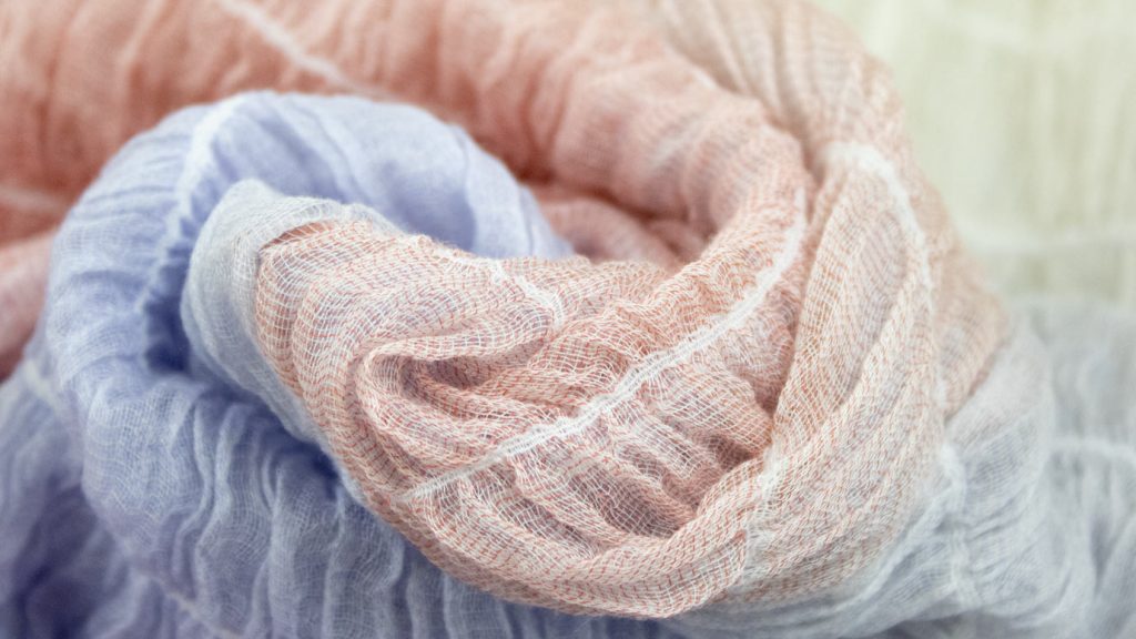 新しい素材や技術を求めていたところ、商談会で播州織と出会い、その魅力に取りつかれました。播州織は端正なチェック柄などの美しいシャツ地などのイメージがあったのですが、それが覆りました。先染め糸から生まれる美しい繊細な織物。美しい糸から生まれる軽くて柔らかい風合い。驚くほどしなやかに優しく伸縮し、かつ優しい肌触りで、クシュクシュとした容姿でかわいい印象でした。