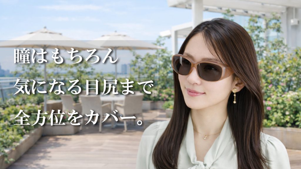 紫外線のトラブルが気になる…だから外出を控えたり、心配で楽しめなかったりしてませんか?瞳も目元も紫外線対策は必要、だからしっかりカバーしたいけど、大きすぎる眼鏡はダサいし、オーバーグラスってなんだか男っぽいし。。