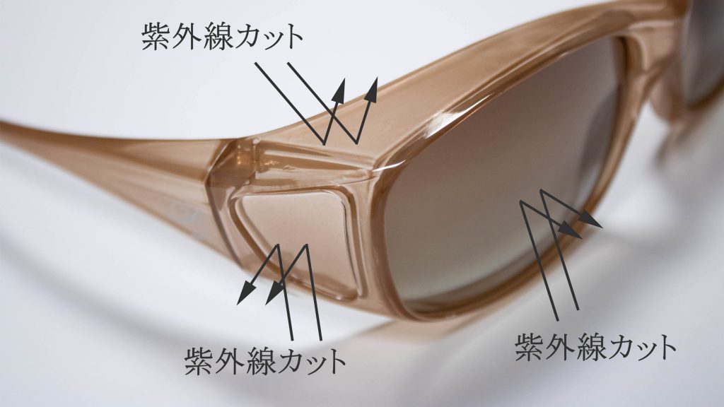 お洒落をまとう紫外線対策。眼鏡の上からも掛けられる。目元しっかりUVプロテクト。